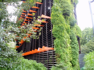 These chairs were set up for a puppet show in the garden. (Correction 8/17: This was not a puppet show but was actually an art installation called "Nomad". Sure looked like a puppet show setup to me!)